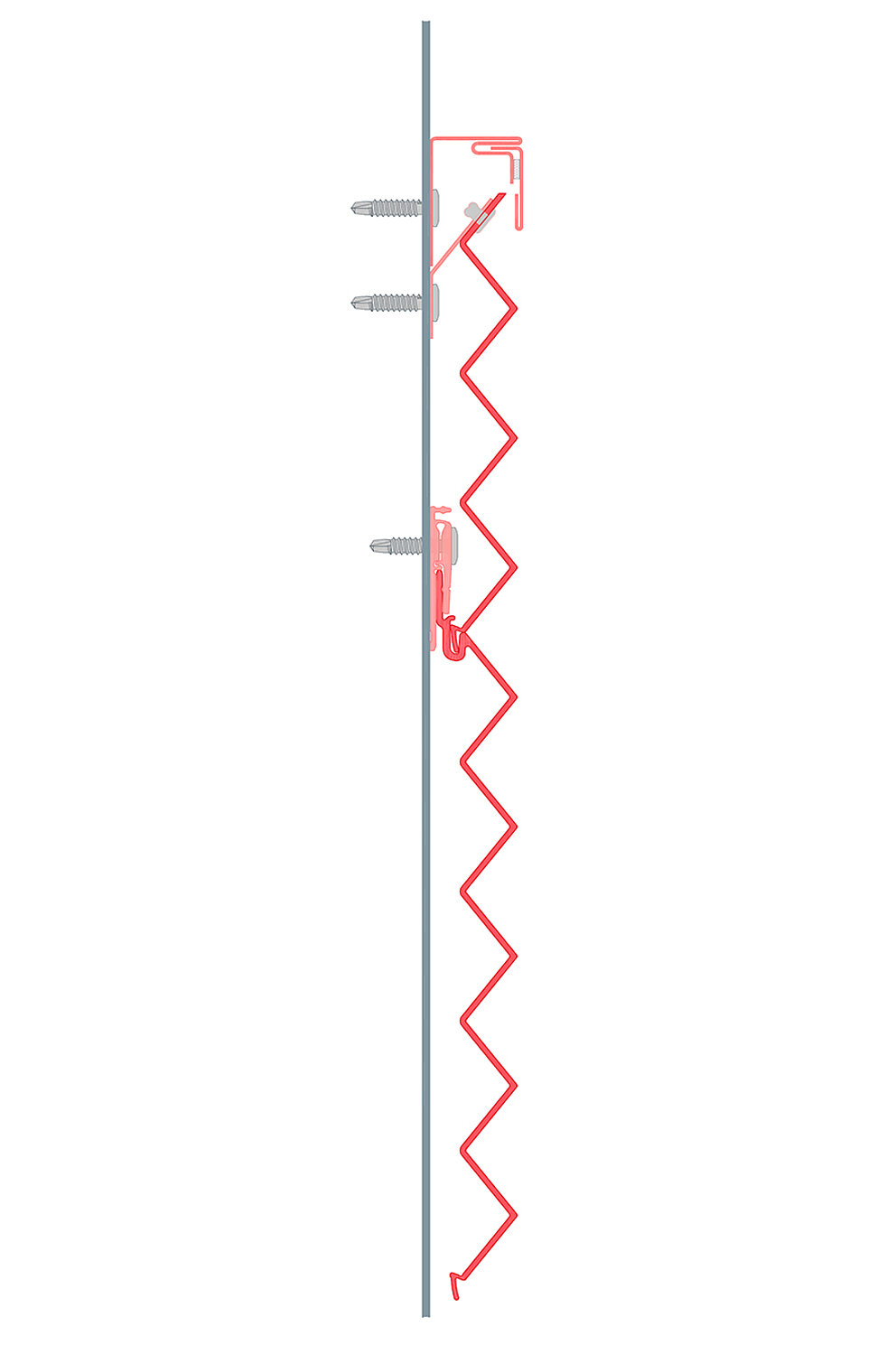 Monter først returhaften på underkonstruktionen, og fastgør derefter den afkortede profil med PREFA-patentnitter på returhaften.