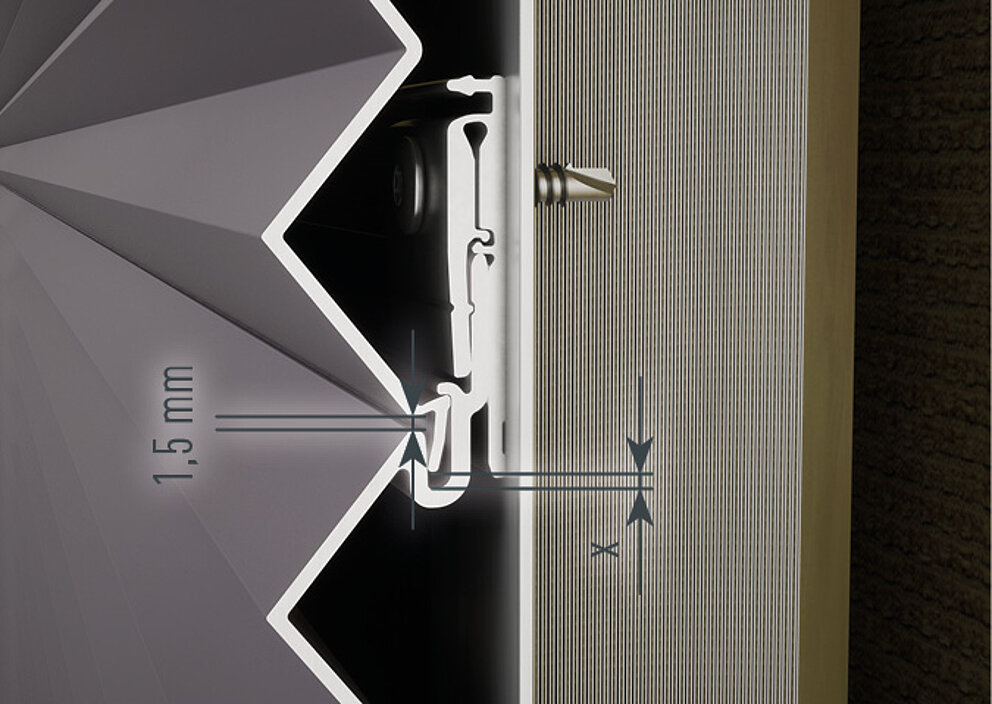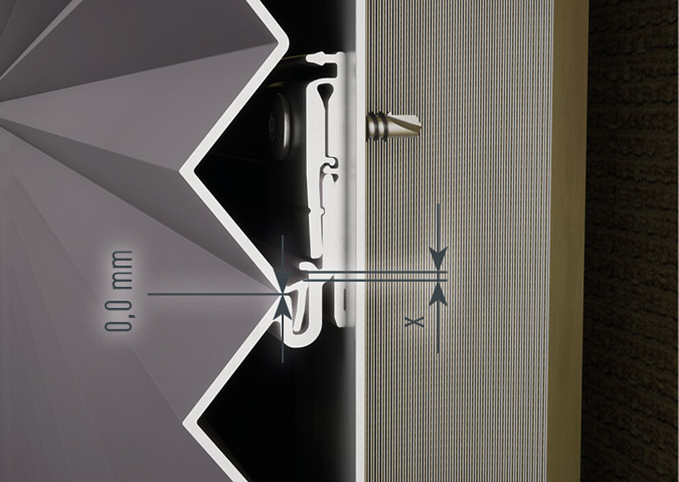 Monteringssystemet tillader pr. dækningsbredde en udligning på +1,5 / -0 mm. Hvis der skal foretages en udligning, anbefales det at fordele den på flere profiler for at sikre rækkens retlinethed og undgå markante fuger. På denne måde forbliver udligningen skjult og er næsten ikke synlig, hvorved der opnås et ensartet og diskret udseende.