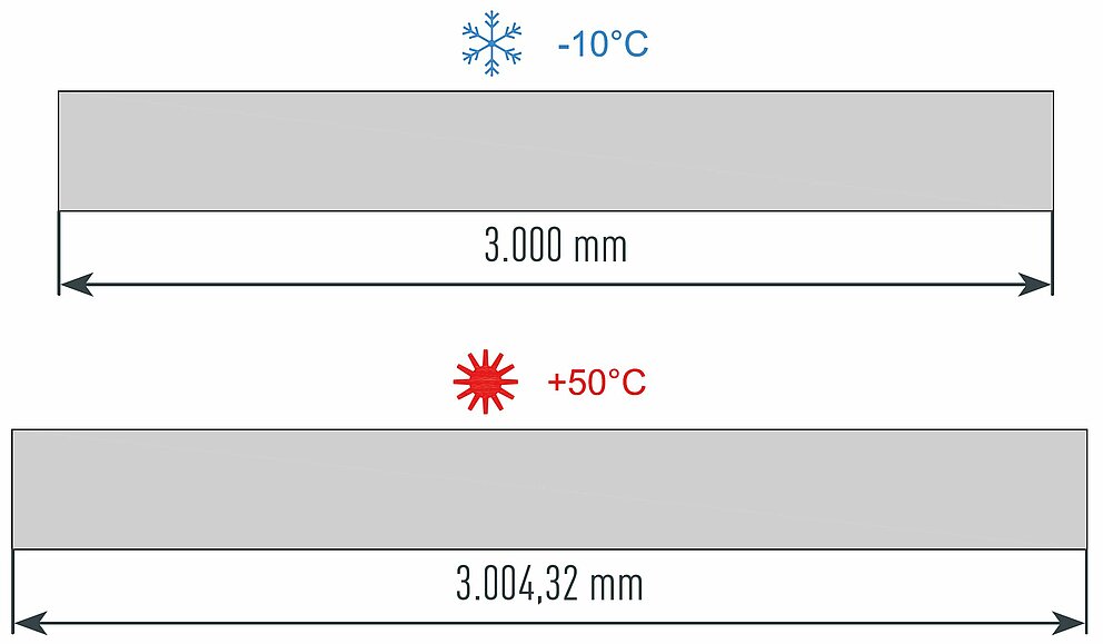 Den termiske udvidelseskoefficient for ekstruderede PREFA-aluminiumsprofiler er 0,024 mm/m/°C.