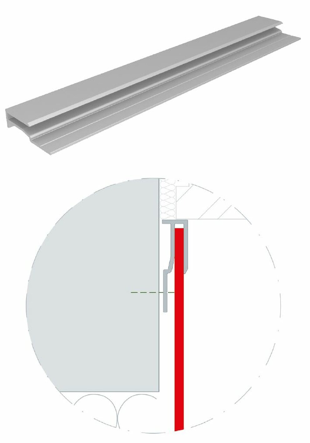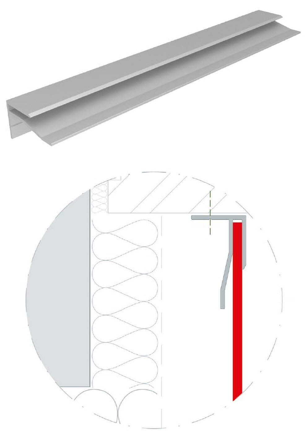 De to ekstruderede indfatningsprofiler for aluminiumskompositplader med en længde på hver 6.200 mm kan være pulverlakeret fra fabrikken.
