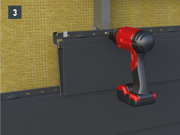 • Montér Siding med den formonterede Prefa.Fuge i overensstemmelse med Siding-monteringsbestemmelserne, og fastgør den på underkonstruktionen (billede 3).