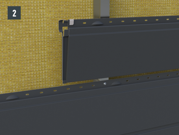 • PREFA Fugen fastgøres bag på Siding vha. en forbukket flap (billede 2).