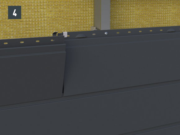 • Anbring den næste Siding, og stik den sidevendte endekant ind i PREFA Fugen (billede 4).