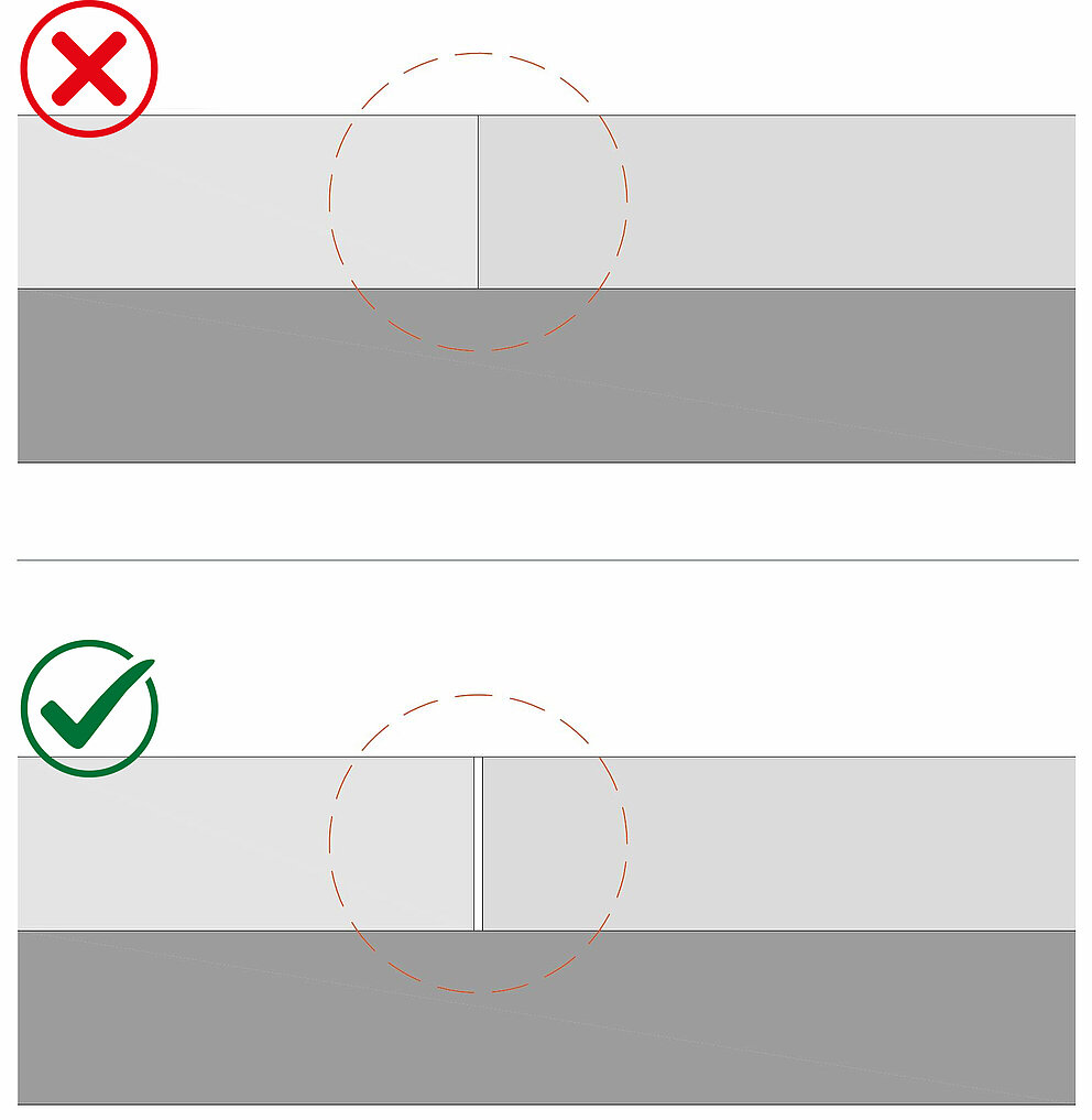 Montering af PREFA Fugen direkte oven på hinanden er ikke mulig: