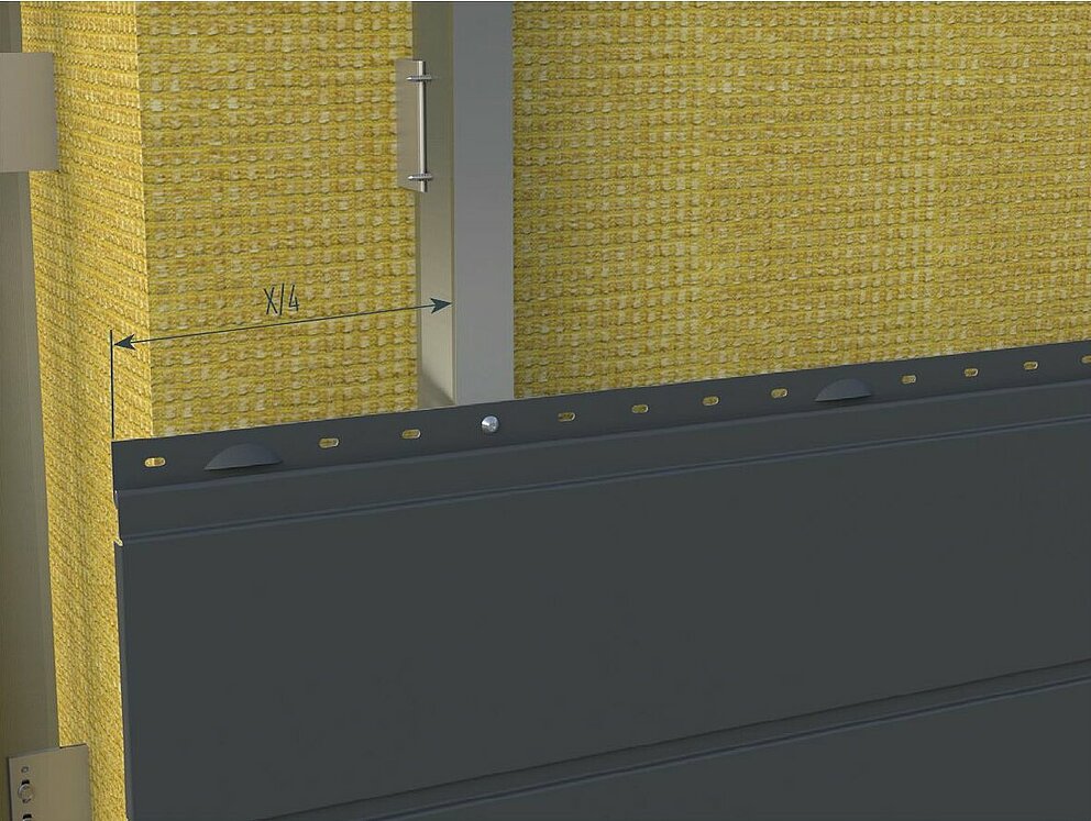 Vær opmærksom på at overholde det maksimale udhæng på Siding, Siding.X og Siding perforeret i overensstemmelse med de statiske krav til ikke-understøttede bygningstag/i kantområdet, der er på højst en fjerdedel af afstanden til underkonstruktionen.