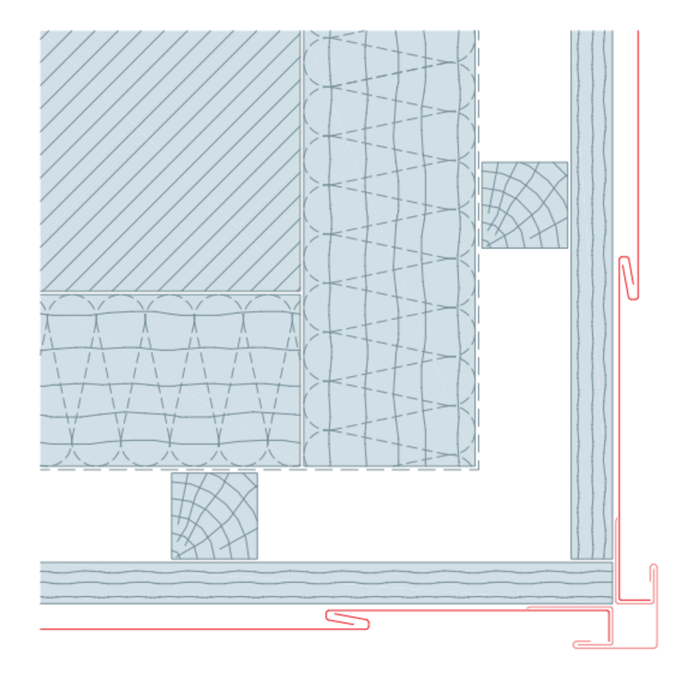 I forbindelse med alle facadeproducter, der rager ind i yderhjørnet, skal sørges for en tilføjelse på 20 mm, som bukkes efter afkortningen.