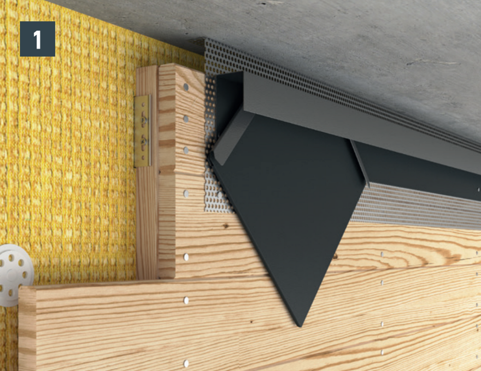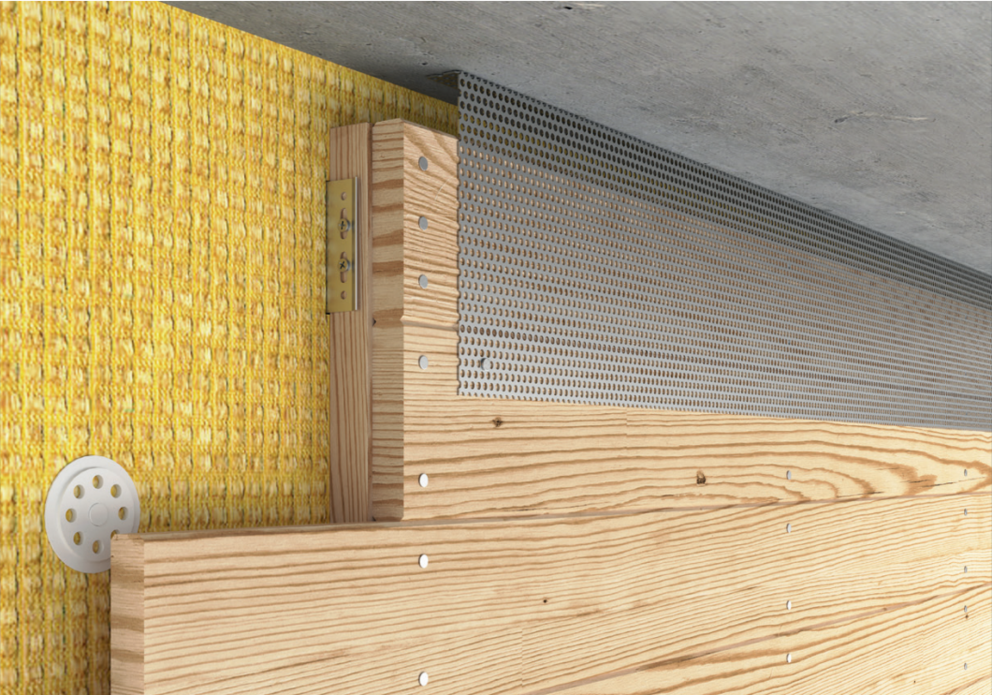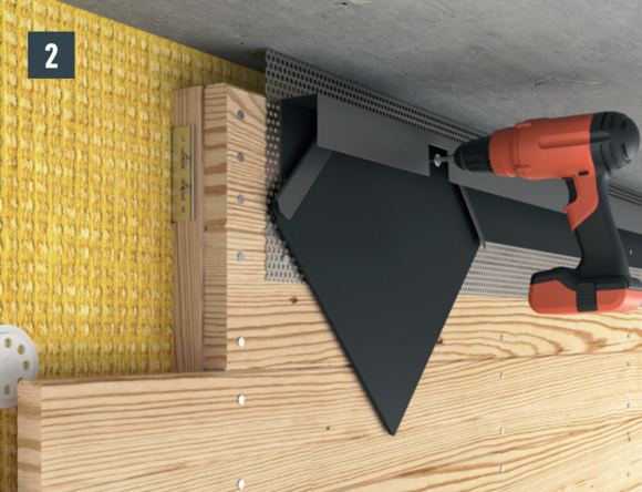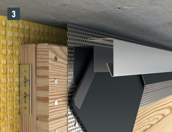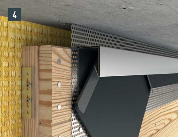 Til ventilering af facaden iht. bestemmelserne skal der være et ventilationsafløbsåbning ved den øvre afslutning. Montér en hullet metalplade ved ventilationsåbningen (f.eks. undersiden af taget) med et buk på 90° for at opnå en øget stivhed.