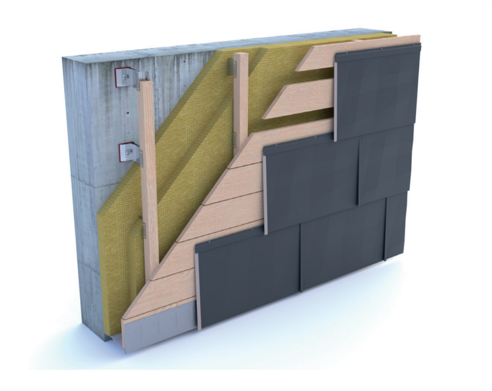 Facadepanel FX.12 kan også monteres på en spærforskalling (min. 24 mm). Ved montering af en spærforskalling skal der sørges for, at der altid er placeret et bræt under fastgørelseslisten, og at der altid bevares en lægteafstand på 420 mm.