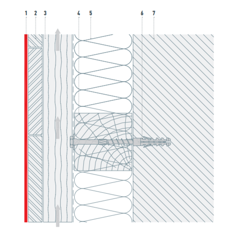 Ventilationsrummet skal, alt afhængigt af underkonstruktionens valg af materiale, være i overensstemmelse med de nationale gældende bestemmelser. Uhindret cirkulation af luften i ventilationen garanteres ved, at bæreprofilerne anbringes vertikalt, så de passer til profilmonteringen. Den derpå monterede fulde forskalling skal være placeret vandret.