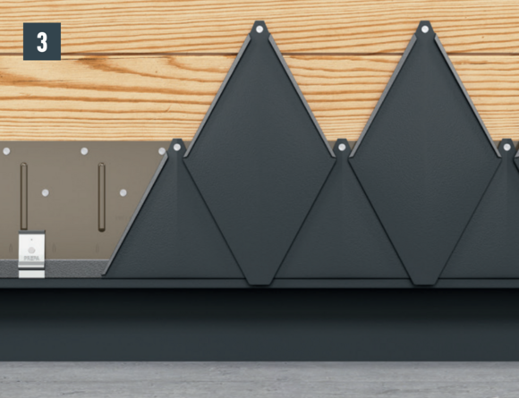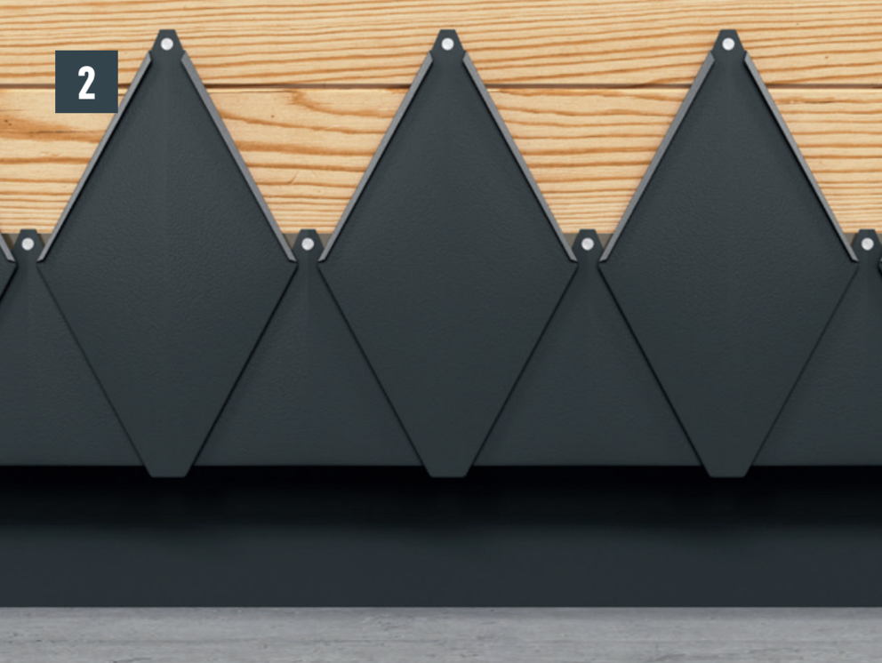 Fastgørelsen af hver rombe sker direkte fra det forstansede fastgørelseshul med et medfølgende rillesøm 2,8/25.