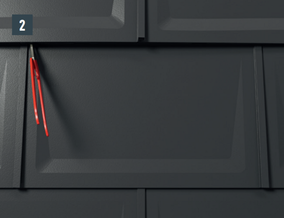 • Fjern fastgørelsen, og klip ind i den øverste patentfals (billede 2). Træk derefter tagpladen R.16 nedad og ud.