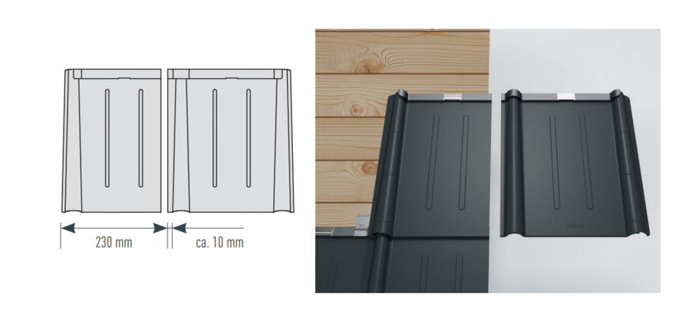 230 mm muliggør affaldsfrit arbejde ved afslutningen i siden.