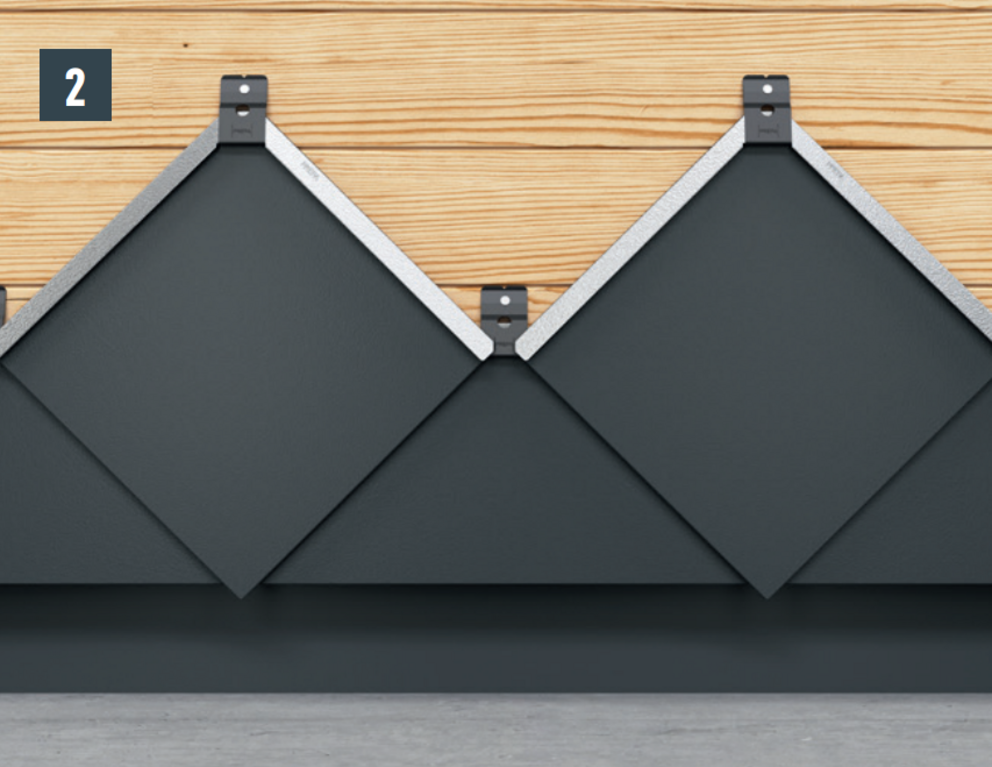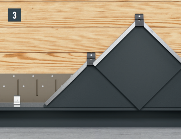 Hver vægrombe 29 × 29 fastgøres med en hafte og et medfølgende rillesøm 2,8/25.