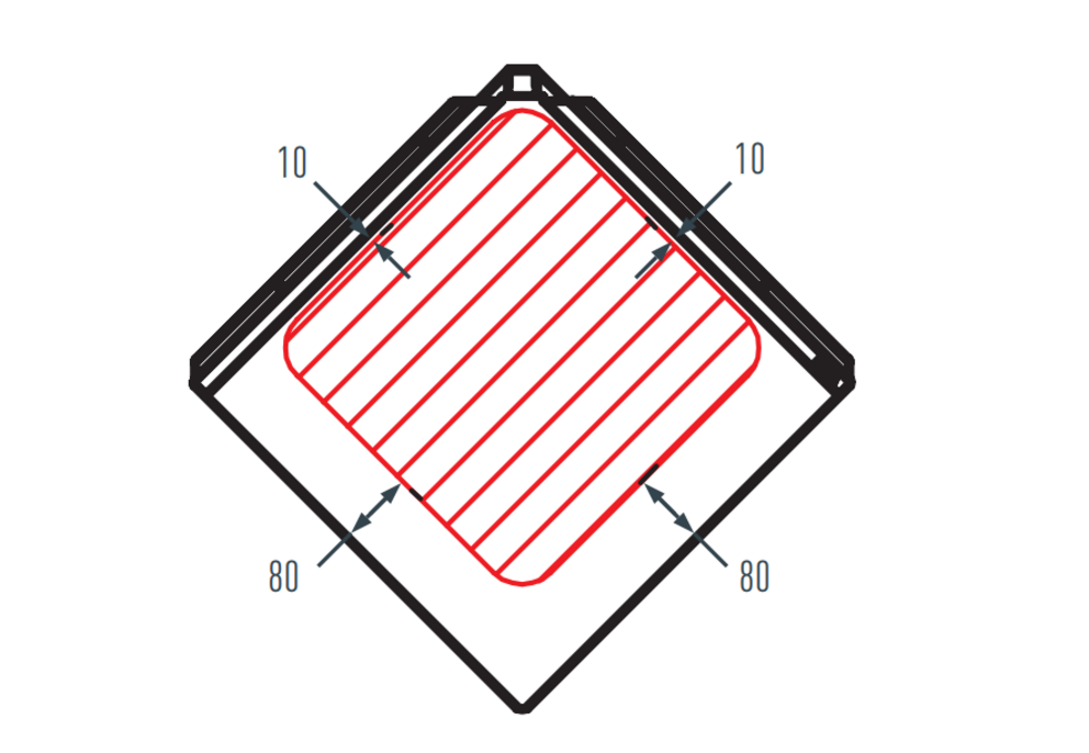 Hvis du skal montere noget på facaden (f.eks. lamper), skal du under monteringen være opmærksom på det tilladte monteringsområde til vægromben 44 × 44. Hvis det ikke er muligt at overholde monteringsområdet, skal der indfalses en underlagsplade.