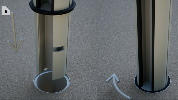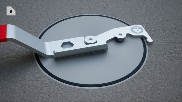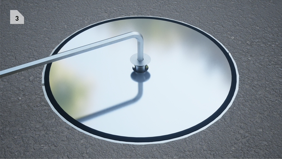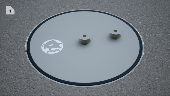- Luk låsbart dæksel (2 skruer): Sæt dækslet med de 2 skruer i 90° vinkel til markeringen ned i jordbøsningen,