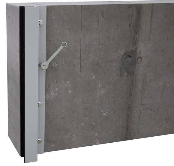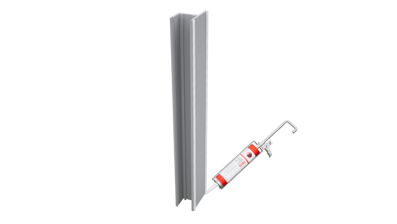 • Påfør to strenge vandtæt og permanent elastisk fugemasse på bagsiden af grundprofilen. Ved direkte kontakt med beton anbefales en beskyttende belægning på bagsiden af grundprofilen.