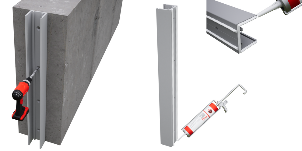 Højvandsbeskyttelsen må kun monteres på bærende vægkonstruktioner!