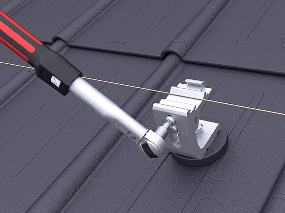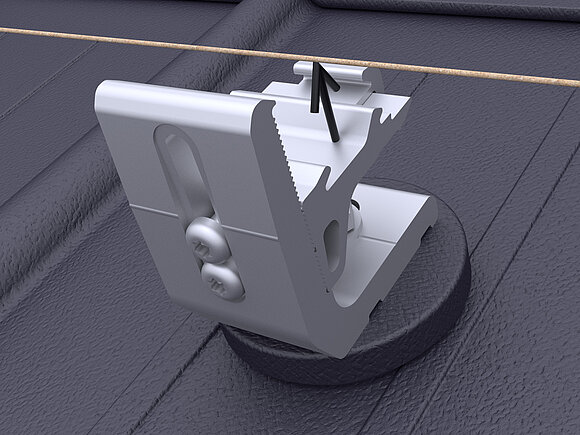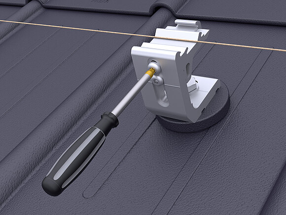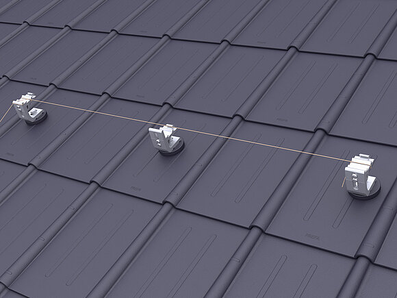 Skinneholderne på de yderste PREVARIO 3.S justeres til middelhøjde. Spænd monteringssnoren, og ret de resterende skinneholdere ind parallelt med taget og i højden. Spænd den øverste skrue på de allerede justerede skinneholdere med et drejningsmoment på 20 Nm.