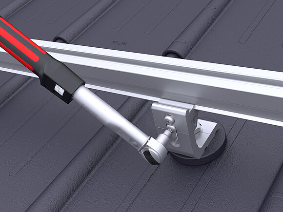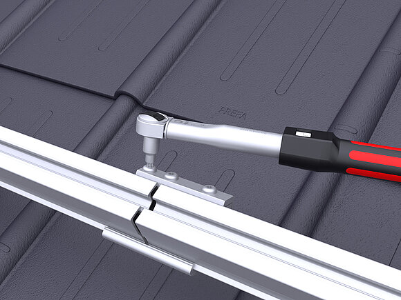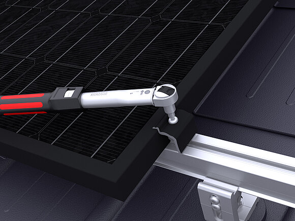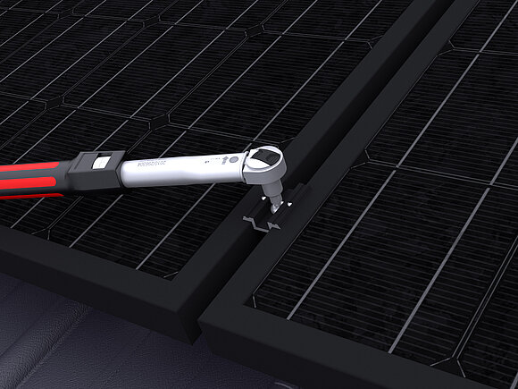 Derefter placeres modulerne, og midter- eller endeklemmerne spændes med et drejningsmoment på 15 Nm.