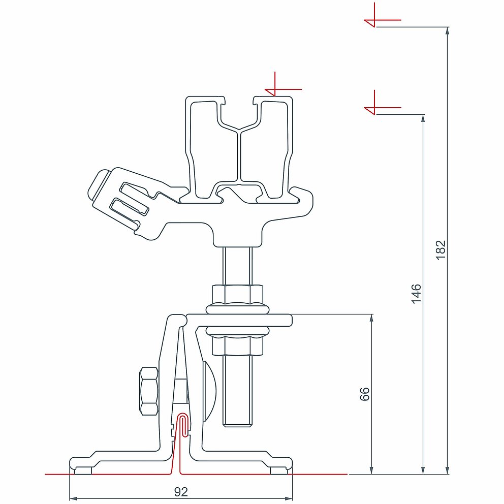 Løs montering af gevindstangen inkl. profilskinneholder og kontramøtrikker. Håndfast spænding af møtrikkerne til eventuelt senere højdejustering af profilskinneholderen (gaffelnøgle SW 18 mm).