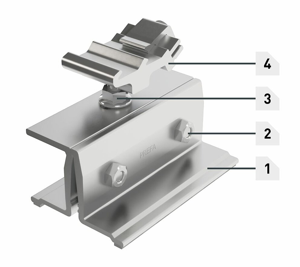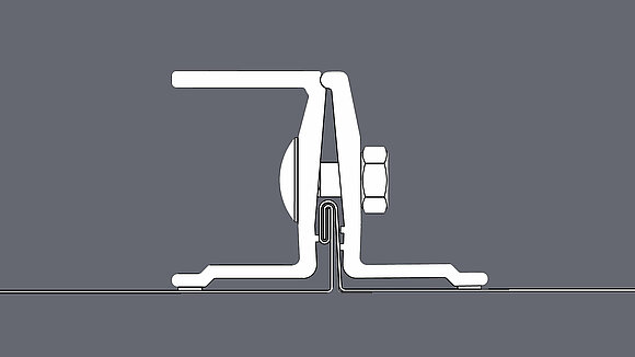 Problemfri montering og sikker fastholdelse på PREFALZ- og FALZONAL®-systemer med dobbeltstående fals. Banernes langsgående hældning påvirkes ikke af monteringen af PREVARIO PREFALZ. Montering på beslag med vinkelstående fals, vinkelskydebeslag og vinkellangsskydebeslag. Der skal tages hensyn til den strukturelt registrerede falsafstand samt den strukturelt registrerede maksimale afstand mellem fastgørelser.