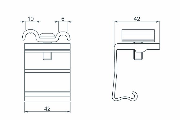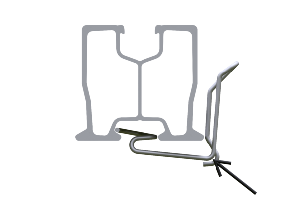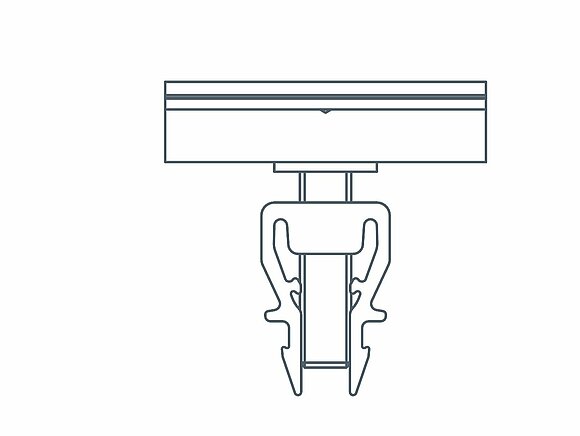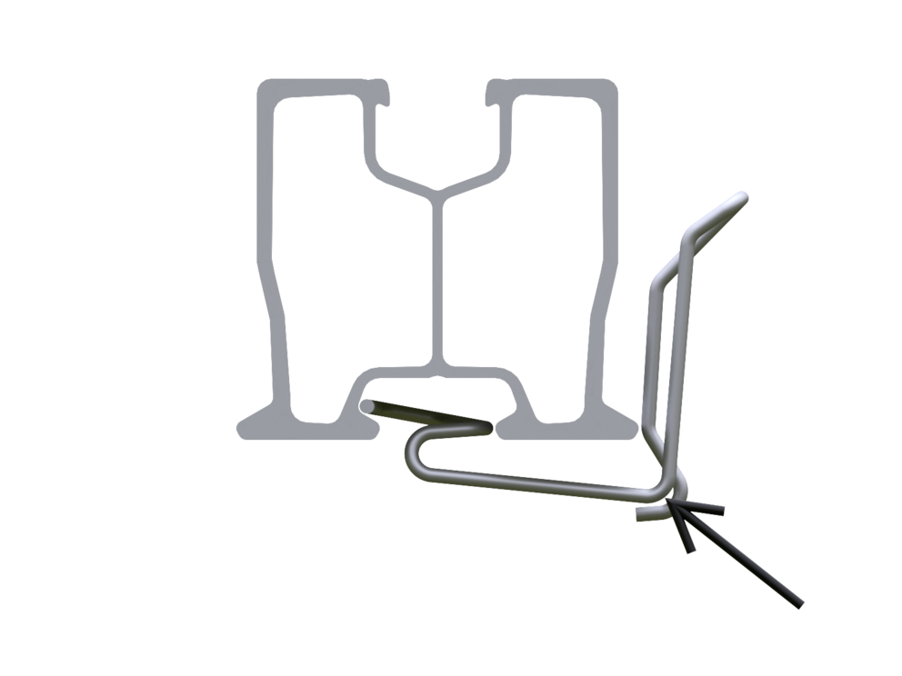 Kabelclipsen fastgøres til skinnens rille (not) i en vinkel nedefra og klikkes fast i skinnen med et tryk diagonalt opad.