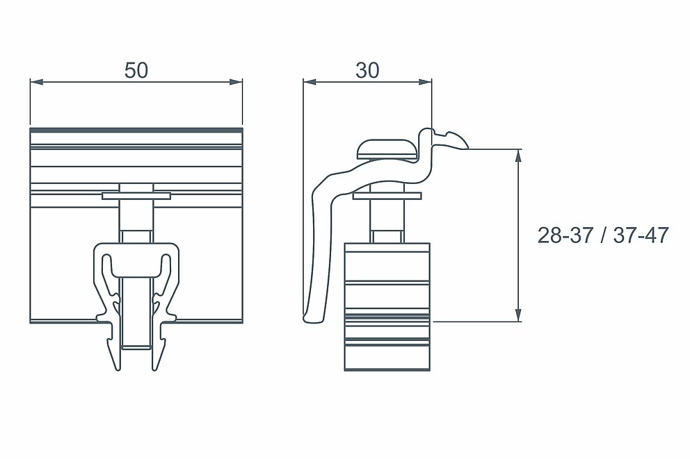 Endeklemme 28 - 37 mm, aluminium Endeklemme 37 - 47 mm, aluminium |