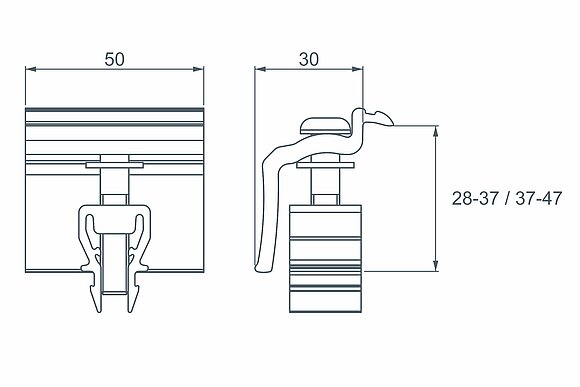 Midterklemme med stift 28 - 37 mm, aluminium Midterklemme med stift 37 - 47 mm, aluminium |