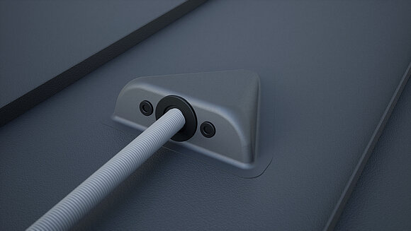 PREFA-solluge til gennemføring af kabler ved fotovoltaikanlæg ved PREFA-taginddækninger.