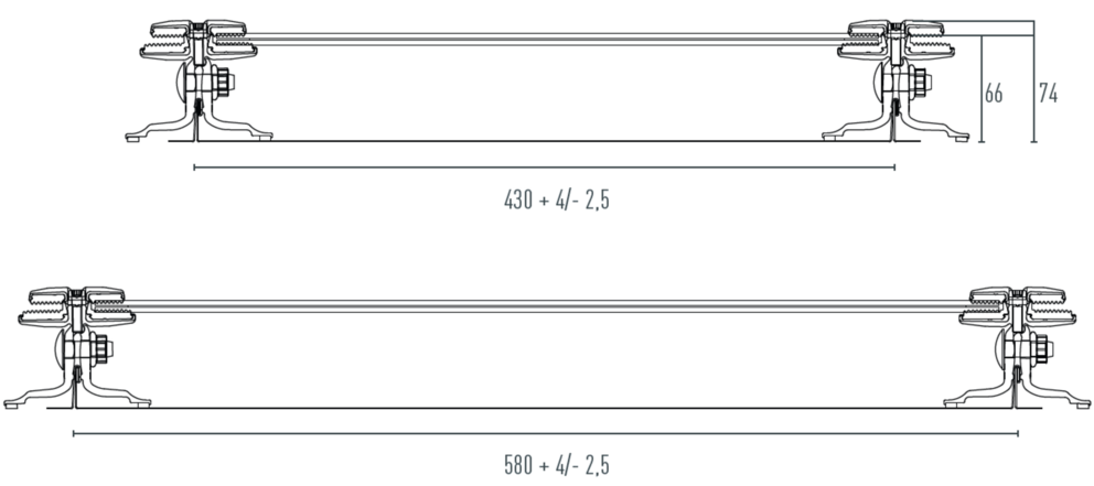 Vær opmærksom på, at baner med dobbelt underfals som følge af det mindre falstab på 10 mm skal fastsømmes, så der opnås en akseafstand på 430/580! Monteringen på baner med dobbelt overfals er ikke mulig på grund af det større falstab på 10 mm.