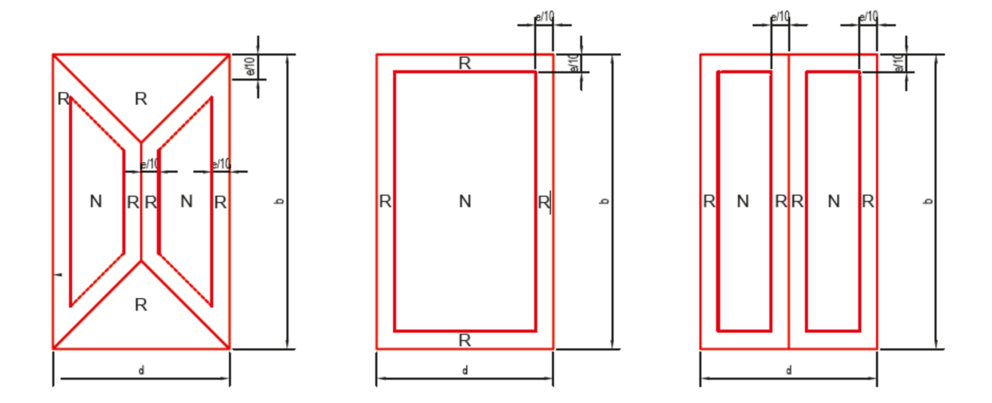 e = b eller 2*h (den mindste værdi er afgørende) - afstanden relaterer til grundfladen