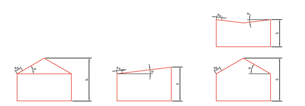 ed = afstandsmål på tagfladen; ed= (e/10) / (cos)