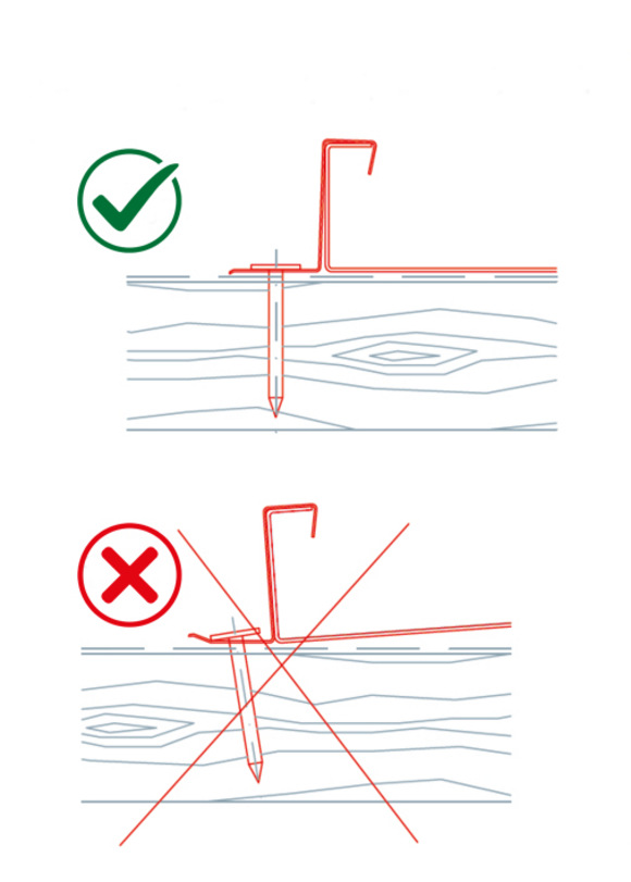 Sømpistolens tryk og islåningsdybde skal tilpasses tilsvarende!