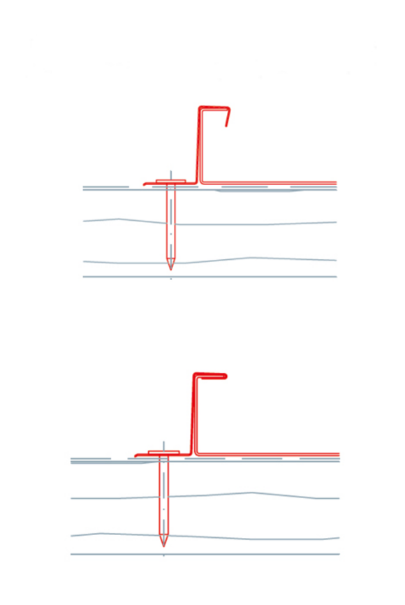 Før banerne fastgøres på forskallingen på underdækkersiden med Niro-hafter, skal falsen først lukkes helt på den isatte overdækningsside.