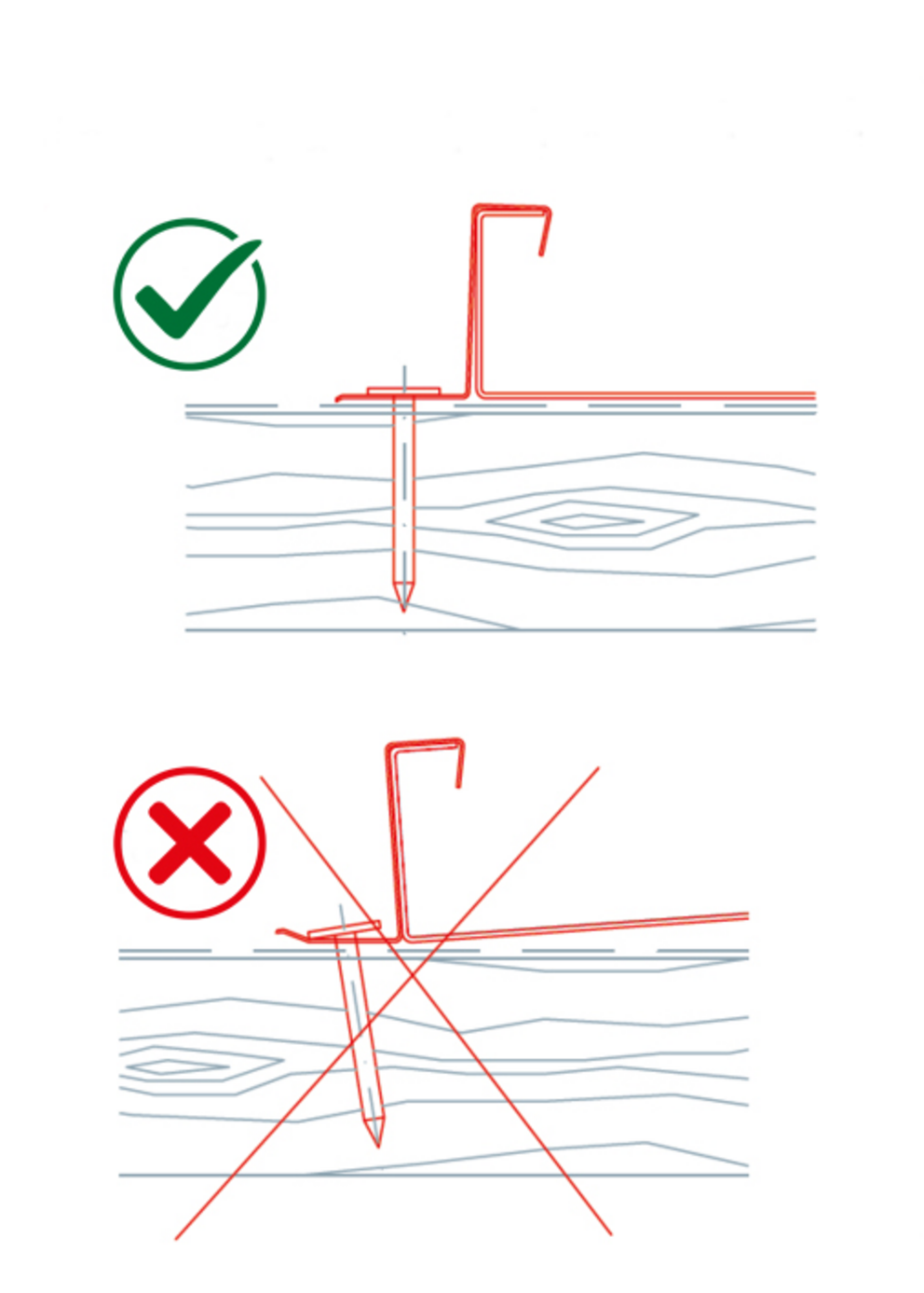 Til fastgørelser af standfalsdækninger skal der anvendes hafter med søm, skruer eller nitter af rustfrit stål. Af den grund tilbyder PREFA Niro-rillesøm i forskellige længder til fastgørelse af PREFALZ-tagdækninger.