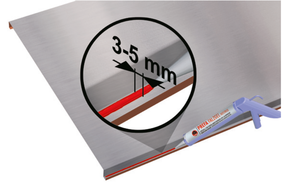 Overhold forarbejdningstemperaturen for PREFA-falsgelen: 0 °C til ca. +70 °C.