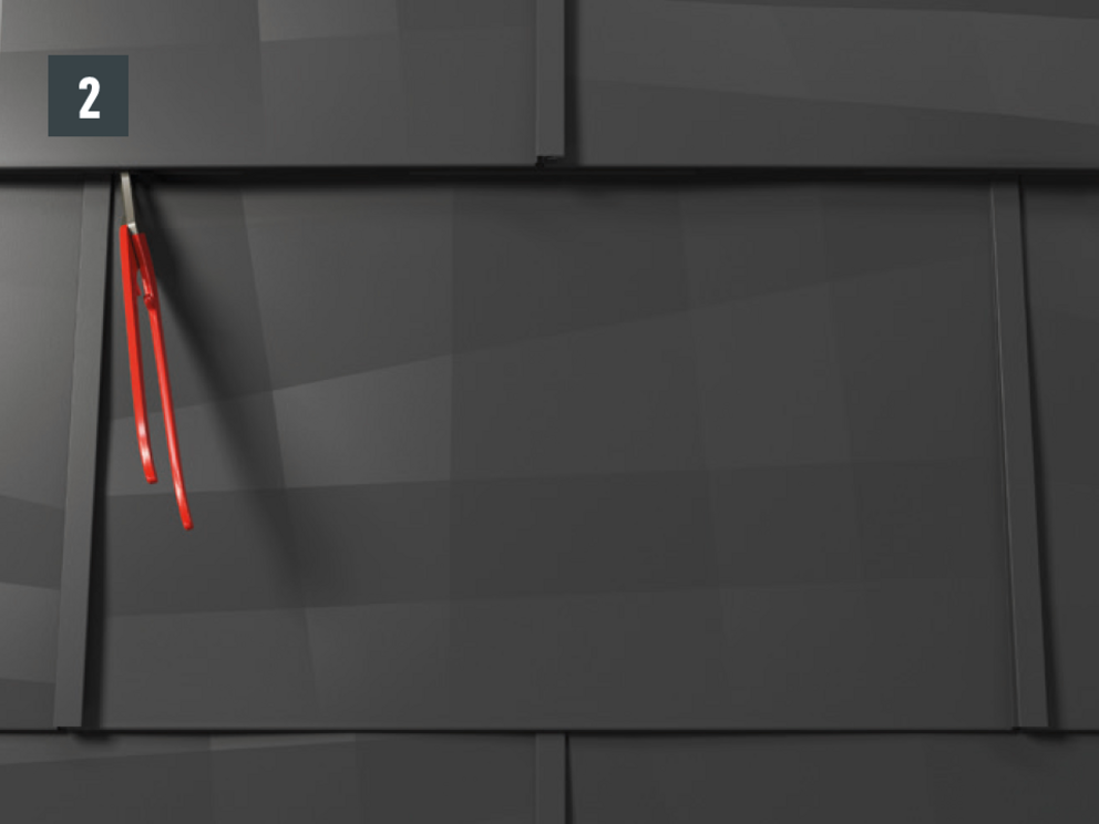 • Fjern fastgørelsen, og klip ind i den øverste patentfals (billede 2). Træk derefter tagpanelet FX.12 nedad og ud.