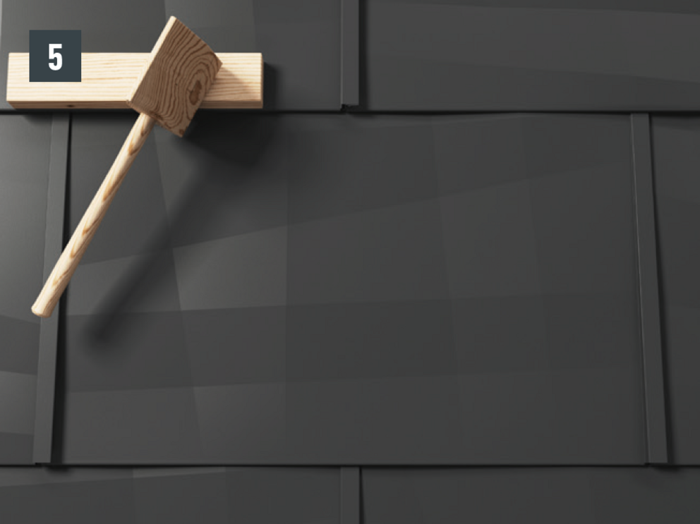 • Skub det nye tagpanel FX.12 ind, og fastgør det. Buk falsen på det øverste tagpanel FX.12 nedad i en vinkel på ca. 90° (billede 4).