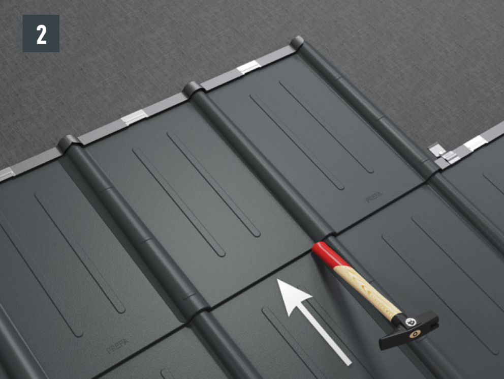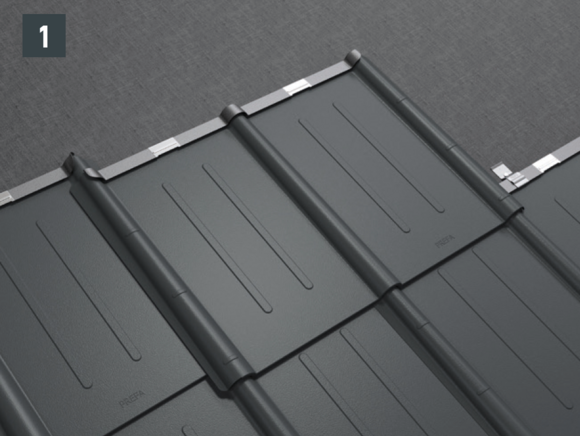 En generel afspænding af overlapningsrillerne er normalt ikke nødvendig. Ved ujævne tagflader (overlapningsrillen ligger ikke på) kan det være nødvendigt at foretage en manuel afspænding med hænderne.