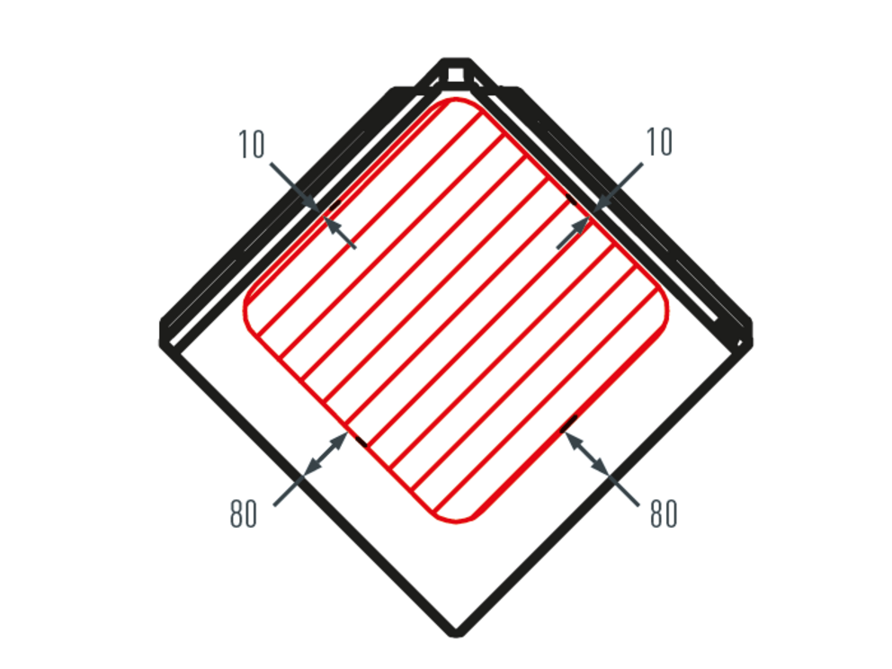 Vær opmærksom på det tilladte monteringsområde på tagromberne 44 × 44 i forbindelse med montering af tagtilbehørsprodukter. Nedenstående illustration viser monteringsområdet for tilbehørsprodukter på foddele. For andre tilbehørsprodukter kan der være defineret afvigende monteringsområder.