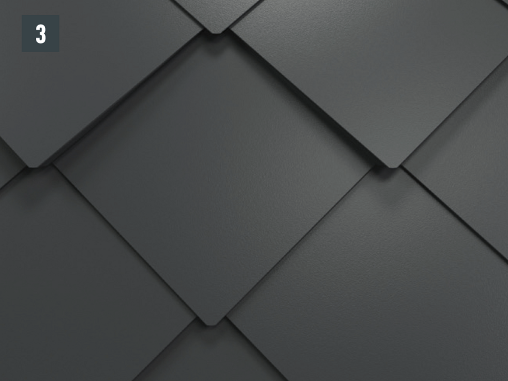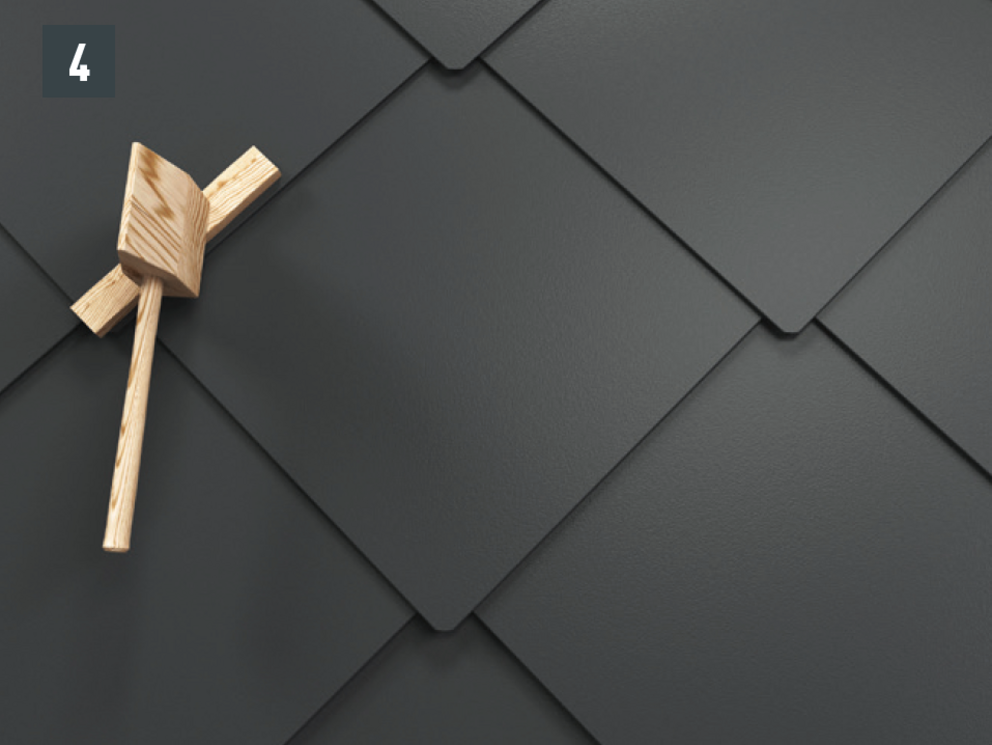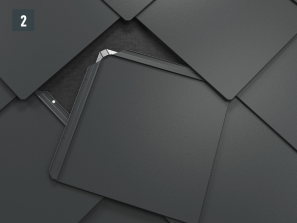 • Åbn den nye tagrombes 44 × 44 isætningsfals lidt, skub den op, og fastgør den (billede 3).