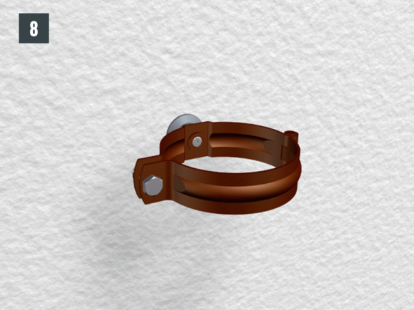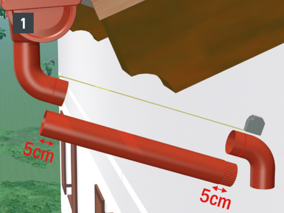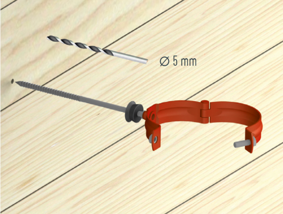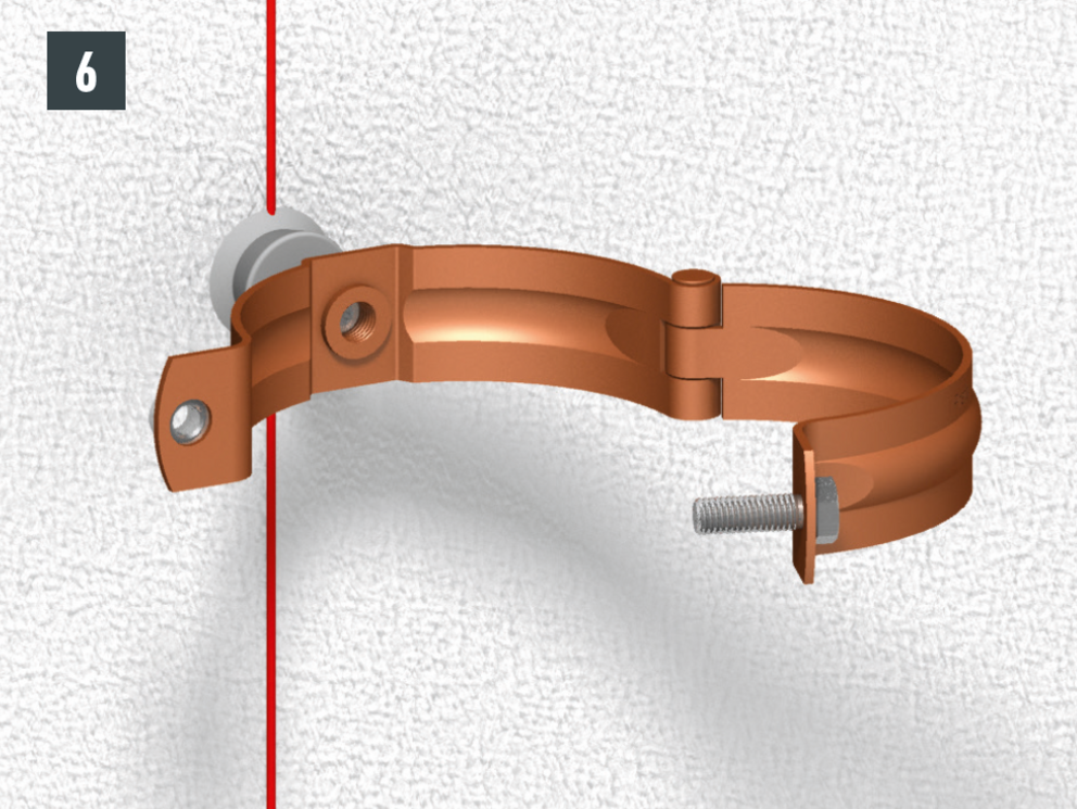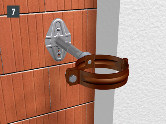 Nedløbsrørene monteres med rørbøjler. Der skal vælges egnede fastgørelseselementer til rørbøjlerne svarende til undergrunden (facadefladen).