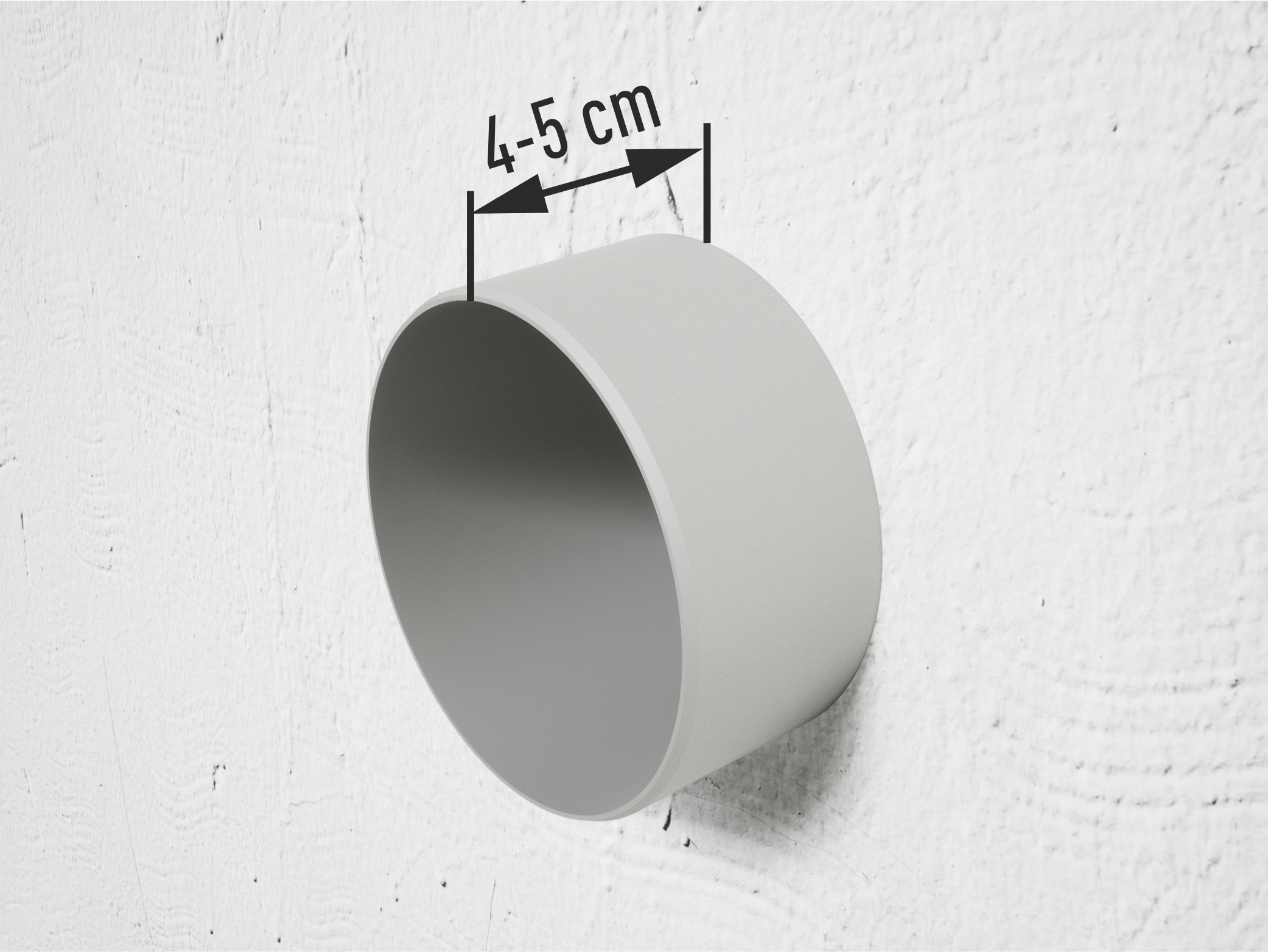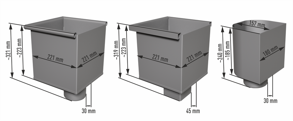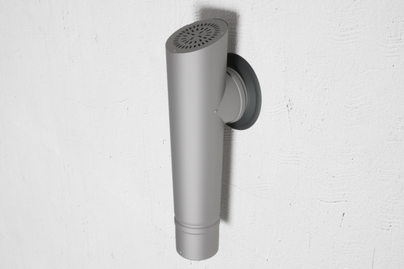 Afstanden mellem PREFA-nedløbsrøret og facadefladen skal være min. 20 mm. Hvis der anvendes kvadratrør, skal der overholdes en afstand mellem muren og kvadratrøret på min. 45 mm.