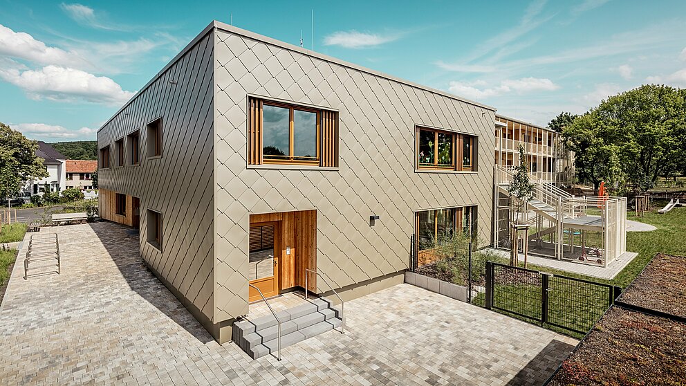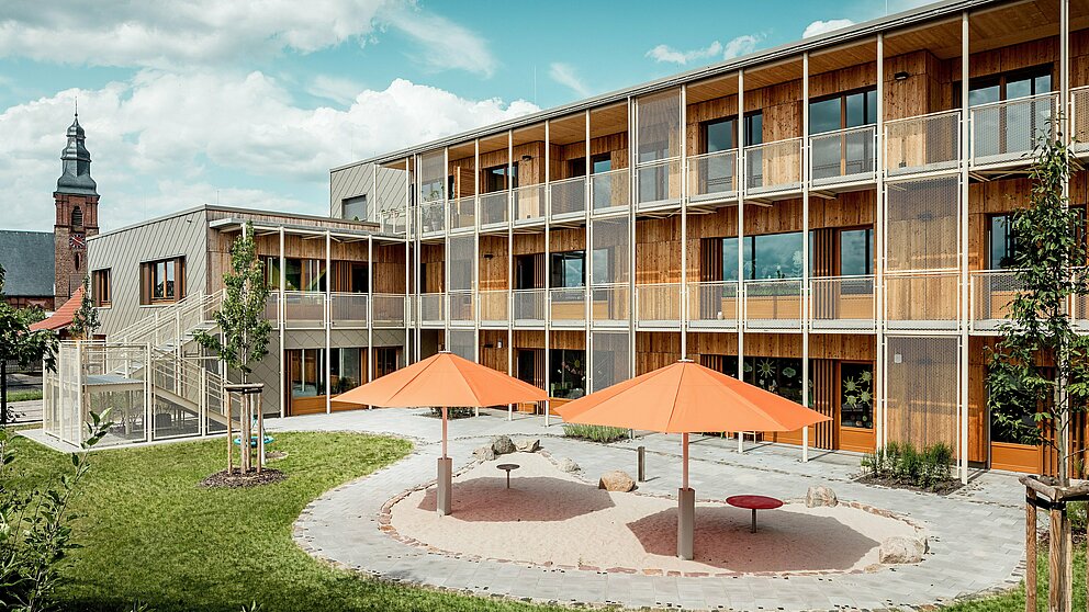 Den nye daginstitution skal dog ikke kun være et rum, der opfylder de yngstes behov, men også et passende beboelsesrum for medarbejderne på den nærliggende klinik. "Vi synes, at det er godt, når flere funktioner bliver kombineret med hinanden, men ofte viser krav, udbudsprocesser og forventninger fra kommunale beslutningstagere sig at være genstridige udfordringer", siger Theo og Claudia Härtner. En udfordring, der var som skabt til arkitektparret, for de er ikke bare specialiseret i byggeri af børnehaver, grundskoler og uddannelsesinstitutioner, men også i løsningsorienteret dialog og diskussion med de ansvarlige.