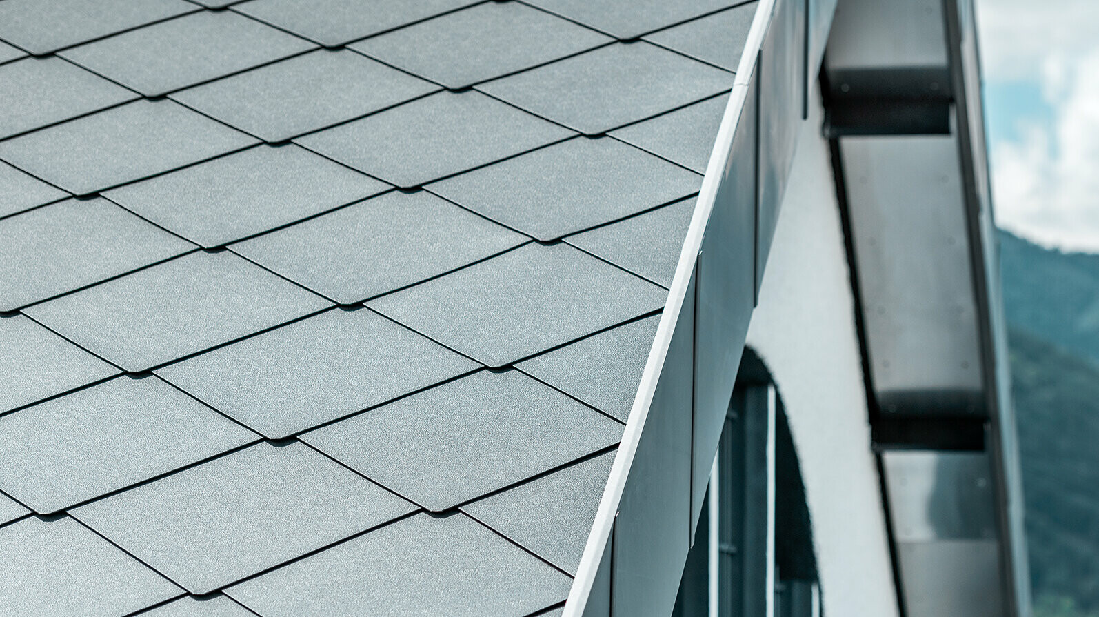 Ved denne tagrenovering af et klassisk sadeltag med kviste og flere tagvinduesarealer har man anvendt den nye og lette PREFA-tagrombe 44 x 44 i lysegrå. Tagrenden er PREFA-hængerenden i den passende farve, komplet med tilbehør.