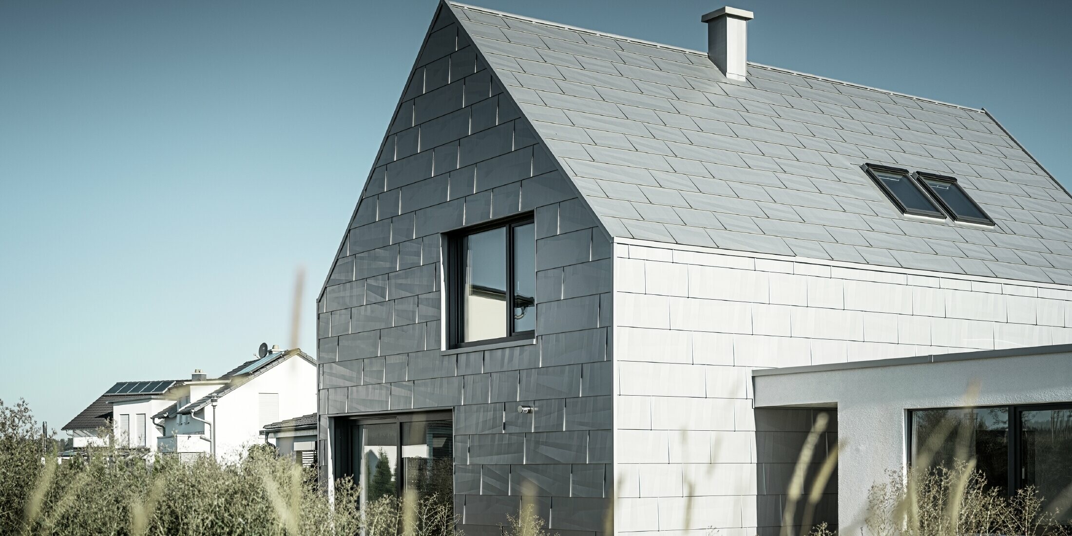FX.12 panelerne i sølvmetallisk er en speciel farve til taget, for facaden er de standard.