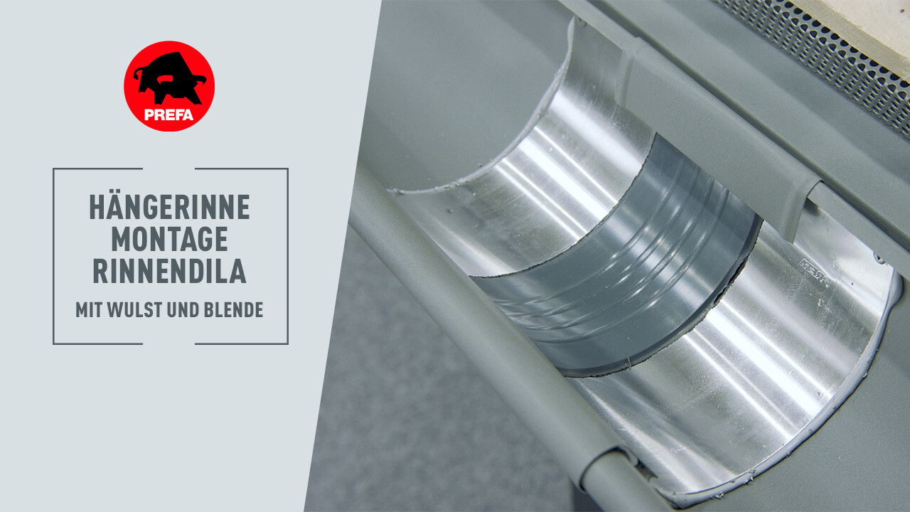 In diesem Video wird die Montage der Rinnendila mit Wulst und Blende bei einer PREFA Hängerinne gezeigt.