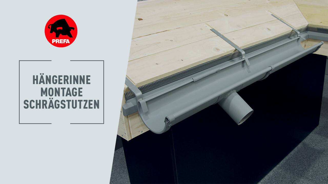In diesem Video wird die Montage des Schrägstutzens der PREFA Hängerinne gezeigt.